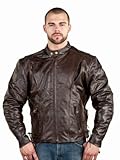 | ✚✚✚ Mens Retro Brown Leather Racer Jacket W/Airvents, Z/O Lining & Sidelaces This mens Scooter jacket is designed with style & comfort at a great price! -------- It is a Retro Brown jacket made from Naked Cowhide leather a high end quality Leather that will last for many years. Features, 1 Piece Panel on the Back to add any Patches, Long Padded-Bottom Back piece for Extra Protection & Z/o lining that runs through the sleeves for comfort and warmer weather adjustment. Has 2 Air-Vents on the front and 2 on the back, a neck warmer, has multi pockets outside & inside, side laces for size adjustment and zippered cuffs for easy on/off. --------- RETURN POLICY, We are confident you will love this jacket, but in any case you are not happy we have a 30 DAY RETURN POLICY. simply send us a return request or contact our friendly customer service for assistance ----------- SIZING INFO, To get the exact size and avoid size exchanges refer to the Dream Biker jacket size chart by clicking on the seller company name above and follow the link at the bottom of the page.