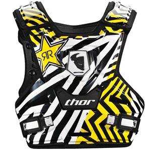 Thor Motocross Sentinel Rockstar Protector - Rockstar?Thor Motocross Sentinel Rockstar Protector The Sentinel is the most versatile, best fitting, lightest roost protector weve ever built. Weighing in at only 1.4 lbs., the Sentinel incorporates numerous vents and air channels for maximum ventilation. Designed for riders who are looking for roost coverage without excess bulk and weight, the Sentinel is pure performance. Included with every Sentinel is both the back strap and number plate. Fits most riders 120-200 lbs. Imported Injection molded chest panel with molded bio-foam interior